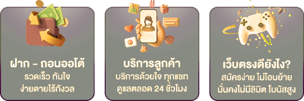 ตอบ : มีระบบฝาก-ถอนอัตโนมัติรวดเร็วภายใน 30 วินาที รองรับธนาคารหลักทุกธนาคาร และมีเกมพนันให้เลือกเล่นมากกว่า 1,000 รายการ